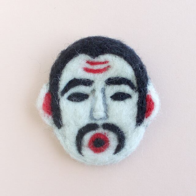 オホホのワッペンバッジです。 西表島の干立村の節祭のミルク行列に現れるひょうきんな仮面神